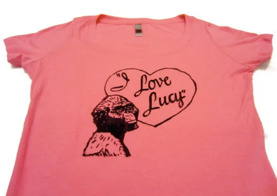 This shirt is perfect for the anthropology or evolutionary biology nerd! The classic 'I love lucy' icon from the tv show with Lucy, Australopithecus afarensis.